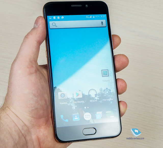 Несмотря на то, что устройство в целом сделано качественно, все равно чувствуется бюджетность решения: аляповатые вставки с полосками, немного коряво устанавливающийся сим-извлекатель, несовпадение цвета корпуса с цветом вставок. Кроме того, лично мне не понравилось покрытие корпуса: поверхность шероховатая, на ней остаются потертости (например, черный пластиковый держатель в коробке оставил темные следы на боках гаджета). То есть, если сравнивать с аппаратами Meizu, то у последнего материалы приятнее.