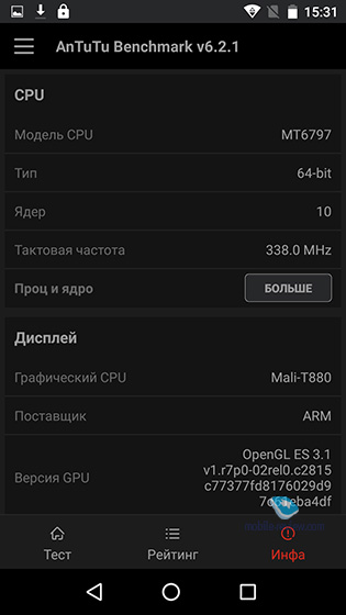 Производительность и программная платформаУстройство построено на новом 64-битном 10-ядерном чипсете от тайваньской компании MediaTek – Xelio X20 (MT6797). Процессор два Cortex-A72 (2,3 ГГц) + четыре Cortex-A53 (1,85 ГГц) + четыре Cortex-A53 (1,4 ГГц), техпроцесс 20 нм. В качестве графики используется ARM Mali-T880. Аппарат летает. У меня все. А если серьезно, то любые игры идут на максимальных настройках графики, гаджет не «лагает» и не тормозит. На ранних прошивках металлический корпус при нагрузке процессора сильно грелся. После нескольких обновлений проблема исчезла. Теперь корпус просто теплый. Тесты производительности