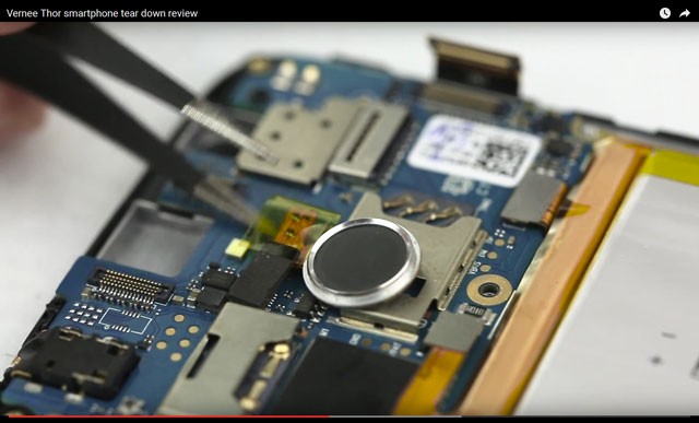 Слева нет никаких элементов, а справа расположены кнопка включения и клавиши регулирования громкости. Они пластиковые, черного цвета с напылением soft-touch. С обратной стороны: камера, утопленная в корпус, спикер, односекционная вспышка и круглый сканер отпечатков пальцев с серебристой каймой. Он отвечает требованиям FIDO с частотой ошибок распознавания ниже, чем 1 к 50 000. Не так давно появилась информация о производителе дактилоскопического сенсора – Egis ET310EB. Точно такой же установлен в Samsung Galaxy S7. Скорость разблокировки Vernee Thor очень высокая, но точность все равно не лучшая: аппарат получается «разбудить» со второго, а то и с третьего раза. Поэтому я вообще отключил сканер. Распознает отпечаток в диапазоне 360 градусов и умеет разблокировать экран при касании сенсора.