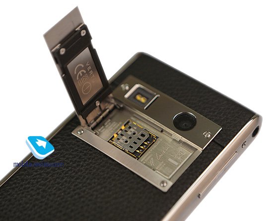 Отделение для SIM-карты скрывается за задней крышкой, ее надо сдвинуть в сторону и откинуть. Конструкция отличается от поворотного винта в предыдущей модели, она проще и удобнее во всех смыслах. Карта формата microSIM, есть адаптер для карт меньшего размера.