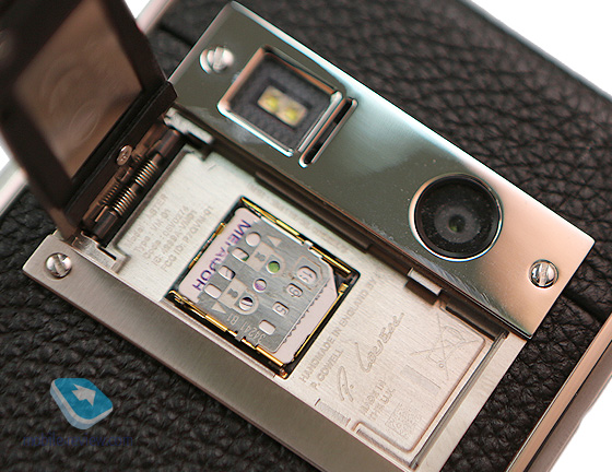 По качеству сборки к модели никаких нареканий нет, все на уровне Vertu – то есть отлично. Есть фронтальная камера с разрешением 2.1 мегапикселя, а также датчик освещенности. Механические клавиши под экраном отсутствуют.