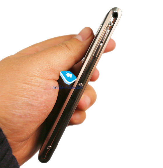 На левой боковой стороне – спаренная клавиша регулировки громкости, тут же – разъем 3.5 мм для наушников или гарнитуры. На правой стороне – выделенная клавиша для запуска приложений от Vertu, а также кнопка включения/выключения.