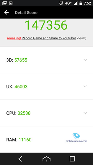 Производительность решения отлична, в меню нет никаких притормаживаний или проблем, все летает. Тесты производительности типичны для использованного чипсета и размера оперативной памяти, впрочем, посмотрите на результаты.