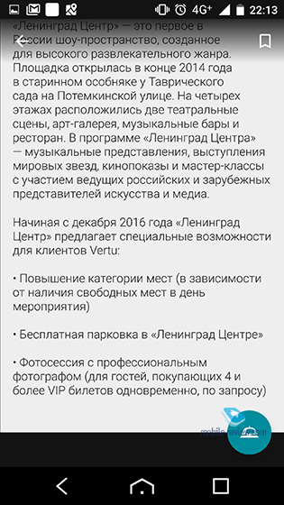 В разделе «Жизнь» можно найти эксклюзивные предложения – концерты, спортивные состязания, выставки – все это проходит по всему миру, а цены указываются в фунтах, так как готовит эти предложения та же британская компания, что поддерживает сервис «Консьерж». Цены, мягко говоря, высокие, к тому же, на ряд венских мероприятий они выше, чем та же цена в Вене (так случилось, что смог проверить это на практике, еще не подозревая, что такое предложение есть в этом аппарате). Поддержка Vertu – это стандартное приложение, которое поможет решить все проблемы с вашим телефоном.