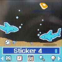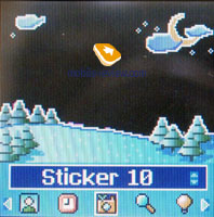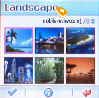 A comfortable camera menu is represented with small icons on the bottom of the screen (5 icons are shown at the same time), switching between the items is done by pressing horizontally on the navi button; pressing vertically allows changing of the settings in the selected item. Pressing the left function key brings up the menu. In the photo album you can view photos in a series but not the whole list. It's interesting that a password may be set for the album, then nobody but you will be able to view it. Also the fact the photos can be set as wallpapers but not sent via MMS is interesting. The photos look decent on the phone screen but bad on a PC. We advise not to load photos to a PC in order not to hurt your feelings. However, acquaint with the samples. ![]()