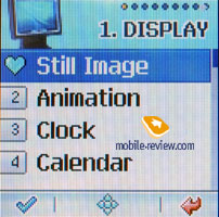 The menu lacks some reasoning, for instance, the most evident problem is that the "OK" button is not responsible for confirmation for all of the items, sometimes you'll have to press the left function key. That is uncomfortable sometimes and confusing. The "Favorites" menu is accessed by pressing left on the navi button in the standby mode. The item allows adjusting user menu for fast access to the most frequently used functions (up to 10 items). You can only add the items indicated with a pale blue heart when selected (the red one means the item has already been added). Adding the item is made by pressing and holding the "*" button. ![]()