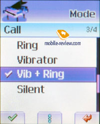 Sound. This comprises everything concerned with ring tones and a sort of call (vibra together with melody, vibra alone, melody alone and quiet). ![]()