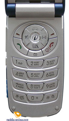 The keypad is made of plastic and the number keys are modest in size and well-distributed so that it excludes mistypes. The keys are marked with Russian and English characters. The keypad backlight of blue is well-distributed and so all the characters are seen entirely. A 4D key with an OK key inscribed, though small, is very handy. Pressing any of four ways invokes fixed actions which are not to be reassigned.