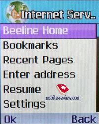 Интернет. This holds a WAP browser of version 2.0.