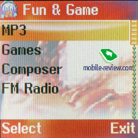 В этом же разделе находятся сетевые настройки и, в частности, настройки GPRS соединения. Fun & Games. Возможности МР3 проигрывателя невелики. Есть возможность создавать простой плей-лист, в настройка эквалайзера можно выбрать один из трех режимов (High, Middle и Low), правда, особых изменений в звучание этот выбор не вносит. Также возможно установить цикличное воспроизведение всех композиций или только одной. Имеется возможность выбрать фон экрана проигрывателя. К сожалению, как и в случае с V500, данный проигрыватель не может работать в фоновом режиме, при приходе нового сообщения он не сворачивается и вам придется полностью выходить из него. Проигрывание мелодии прерывается только в случае, когда вам поступает входящий звонок.