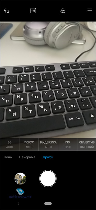 Снимает фотографии аппарат просто отлично: детализация, цвета, четкость по углам, динамический диапазон и другие параметры без вопросов. Широкоугольная оптика среднего качества. То есть чувствуется, что модуль тянет, а «стекло» такое себе ввиду сильного мыла по краям кадров. Фронтальная камера тоже не отстает от основной камеры. Кадры получаются максимально детализированные с точными цветами и балансом белого. Даже ночные кадры выходят ну очень приличными. Видео аппарат умеет писать в 4К (3840х2160 пикселей) при 30 к/с. Формат MP4, AVC, звук AAC два канала. Есть возможность выбрать 1080h 60 к/с или замедленное видео 1080р 120 FPS. Качество снова без вопросов. Итого: за свои деньги камеры в Xiaomi Mi A3 просто лучшие среди конкурентов! Интерфейс: сверху - вспышка, HDR, Ai, эффекты и настройки; внизу режимы - видеоклип, видео, фото, портрет, ночь, панорама и профи (ISO 100 - 3200, выдержка 32 - 1/1000 секунды).
