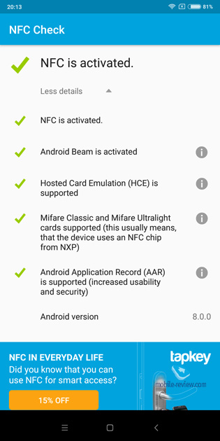 Для бесконтактной оплаты существует NFC с поддержкой Mifare Classic и Ultralight. Можно легко считывать карты «Тройка», записывать на них денежки и поездки.