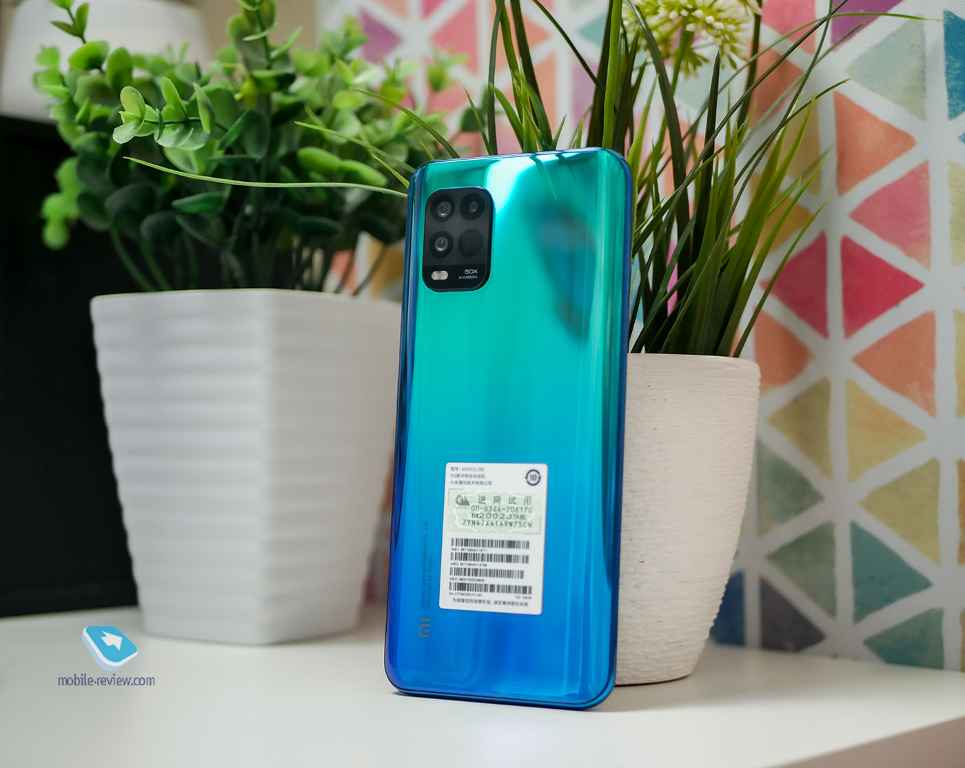 В Китае смартфон Mi 10 YE продается в пяти цветах: черный, синий, оранжевый, зеленый и голубой. На официальном сайте они звучат более поэтично: цвета персикового грейпфрута, черничной мяты или персикового улуна. У меня на обзоре аппарат был в весенне-молочно-зеленом цвете. Каждый из вариантов имеет градиент. В реальной жизни последний цвет – это градиент от синего к зеленому. Такое оформление мы видим последние года три у компании Huawei/Honor. На рендерах телефон смотрится необычно, а в действительности все вторично. Расположение элементов стандартное: