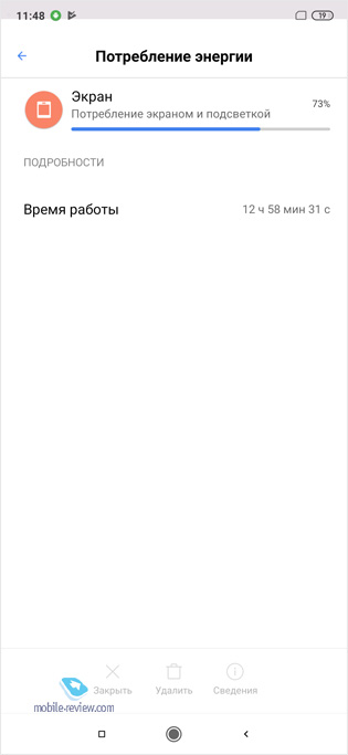 Итого: неплохой SuperAMOLED экран со средней яркостью подсветки, но высокой контрастностью и приятной цветопередачей. Время работыТелефон оборудован встроенным аккумулятором емкостью 4000 мАч. На мой взгляд, модель ведет себя более стабильно, нежели Mi 9. Выражается это в «жоре» энергии: если мой образец Mi 9 (/review/xiaomi-mi9.shtml) может почти моментально разрядиться на 10% только от 5 минут просмотра 4К-видео, то Mi 9T это делает более плавно. В простое Mi 9 «съедает» 10-15%, а вот Mi 9T с тем же набором приложений разряжается на 5-7%.