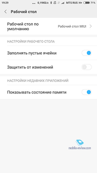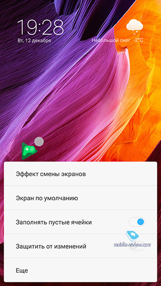 В настройках рабочего стола можно назначить главный экран, а также выбрать стиль перелистывания рабочих столов, что не является уникальной функцией, но наличие этой возможности радует. Выбор видов анимации невелик, популярные в PlayMarket оболочки от сторонних производителей зачастую обладают куда более внушительным арсеналом стилей перелистывания рабочих столов, который остается невостребованным. Возможно, поэтому авторы MIUI 9 решили ограничиться наиболее популярными вариантами. Можно закрепить расположение иконок, запретив изменения.