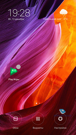 Есть основания полагать, что функционал этой панели быстрого запуска будет со временем расширен дополнительными сервисами и приложениями, которые пользователь сможет добавлять на эту панель. Пока же довольствуемся тем, что есть. Рабочий столВнешне не претерпел каких-либо значительных изменений и выглядит так же, как и в MIUI 8, однако главные нововведения скрываются внутри, в настройках. Чтобы попасть в настройки рабочего стола, необходимо сделать пальцами привычное по предыдущим версиям движение «щипок» на главном экране. Само меню настроек рабочего стола теперь представлено тремя пунктами: обои, виджеты и, собственно, настройки.