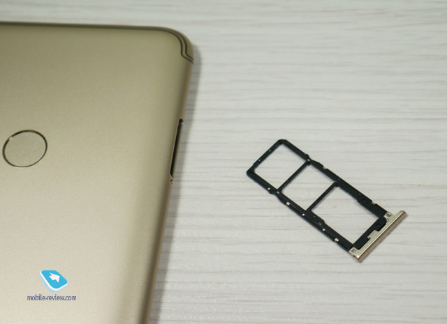 Слева находится качелька регулировки громкости и кнопка включения, справа – лоток для двух nanoSIM и карты памяти. Обратите внимание, слот в этой модели раздельный, вы можете использовать её с двумя симками и карточкой одновременно.