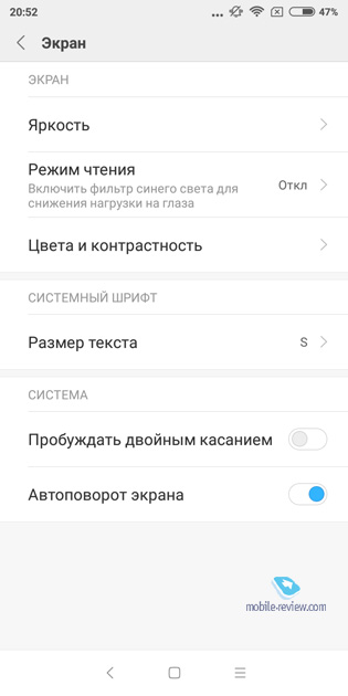 В MIUI есть множество настроек экрана, вы можете изменить размеры шрифта и всего интерфейса системы, включить отдельный режим чтения по расписанию или же изменить цветопередачу по своему вкусу. Правда, от нехватки разрешения всё это не спасает.
