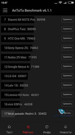 ЗаключениеКачество связи не вызвало у меня вопросов. Вибросигнал средний по силе, поэтому в карманах теплой куртки вы вряд ли его почувствуете. В России Xiaomi Redmi 3 предлагают от 11 000 до 13 000 рублей. За эти деньги вы получаете интересный аппарат для тех, кому важны габариты: нечасто встретишь устройства с экранами 5 и менее дюймов, где используются хорошее железо и емкая батарейка. К тому же, цена вполне привлекательная. Из обзора, думаю, вы уже поняли, что положительных моментов у аппарата много: материалы, производительность, две симкарты, слот под карту памяти, 4G, неплохие камеры и так далее. Однако существует и относительно серьезный недостаток: корпус чрезвычайно скользкий, смартфон так и «просится» на землю. Если найдете чехол, то проблем станет меньше. Прямых конкурентов мало, однако аналоги существуют: