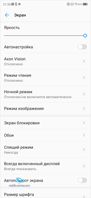 В настройках можно включить AOD. На экране блокировки отображаются часы, дата, заряд аккумулятора и пропущенные сообщения. Время работыВ аппарат ZTE Axon 10 Pro установили несменный аккумулятор емкостью 4000 мАч. В моих условиях эксплуатации смартфон «жил» полтора дня. Если это время измерять свечением экрана, то это примерно 5-6 часов на автоматической яркости.