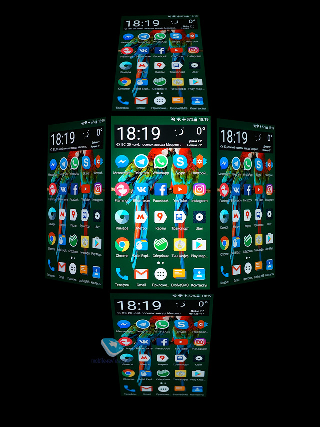 У экрана естественная цветопередача, белый цвет выглядит белым, а чёрный — черным, нет серых засветов, а уход в зеленый, свойственный AMOLED-дисплеям, виден только при просмотре под углом.