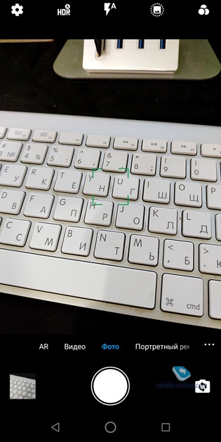Интерфейс камеры выглядит вполне стандартно, немного напоминает приложение от iPhone, как минимум, по части переключения режимов.