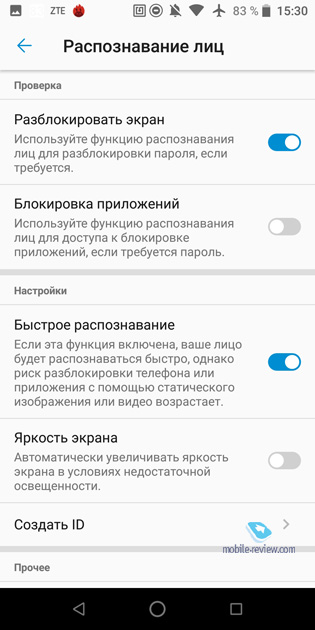 Фронтальная камера также может работать как Face ID, система создает и запоминает ваш портрет, а затем вы можете разблокировать смартфон, просто посмотрев на него. И хотя распознавание работает корректно даже в условиях плохого освещения, его ключевая проблема в том, что для его работы требуется включать экран смартфона. В итоге это требует большего времени, чем простое касание сканера отпечатков пальцев. Кроме того, время разблокировки по лицу занимает около двух секунд, что также очень долго.