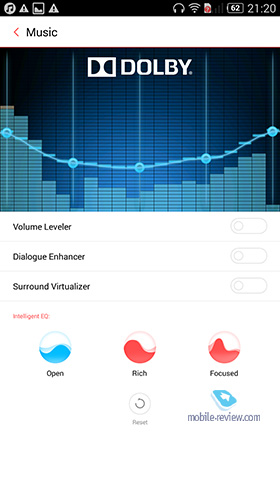 МультимедиаМузыкальный плеер. После запуска перед вами появляются две большие папки: все альбомы и избранные. Ниже – плейлист, альбомы, артисты, папки, менеджер загрузок и другое. Громкость динамика чуть выше средней, качество неплохое. Если закрыть отверстие динамика, то уровень громкости снизится практически до нуля. Громкость в наушниках очень высокая, раскачиваются все имеющиеся у меня в коллекции «уши». Так что, если вам нужна громкость на пределе возможного, берите Nubia и не прогадаете. Качество мне очень понравилось: звук мощный, насыщенный, басы приятные, есть высокие.