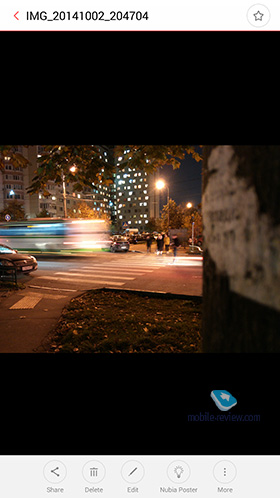 Аппарат легко находит до 50 спутников (GPS - Qualcomm® IZat™ Gen8B) за несколько секунд даже возле окна при «холодном» пуске. Откровенно говоря, очень удивлен чувствительности. Память и карта памятиВ Nubia 7 MAX используется 2 ГБ оперативной памяти, в среднем свободно около 900 МБ. В старшей модели Nubia – 3 ГБ ОЗУ. Несмотря на то, что в устройстве 32 ГБ встроенной памяти, производитель установил здесь слот под карту памяти стандарта microSD. Максимальный объем – 64 ГБ. КамераУстройство оснастили двумя модулями камер: первый и основной – 13 МП с автофокусом, диафрагма объектива F2.0; второй – фронтальный на 5 МП без автофокуса, с широким углом обзора, диафрагма объектива F2.3. Хотя с точки зрения «софта» гаджет укомплектовали под завязку, большая часть фишечек оказалась практически бесполезной, особенно раздел «FUN». Но обо всем по порядку. Качество фотографий, как мне показалось, немного ухудшилось с обновлением прошивки. Однако деваться было некуда: либо стабильная работа устройства и неважное качество кадров, либо глюк на глюке и приличное качество кадров. Минимальное значение ISO – 100, максимальное значение ISO – 1600. Минимальное значение выдержки составляет 1/5000 секунды, максимальное значение – 1 секунда. Оптический стабилизатор отсутствует, поэтому в подсказках есть указания по использованию штатива. У меня сложилось впечатление, что разработчики не смогли придумать корректный алгоритм обработки фотографий, так как чувствуется, что есть потенциал. Вероятно, в эту модель установили слабый модуль: много цветного шума, замыливание деталей изображения и так далее. В настройках есть отдельная опция удаления шума, но она работает крайне агрессивно, превращая картинку в мыльное пятно. Короче говоря, не хватает лучшей детализации. Автофокус работает плохо: иногда даже по тапу не наводит резкость. Его можно настроить вручную, однако реализована эта функция неудачно: снизу появляется полоска со шкалой, которую необходимо прокручивать либо вправо, либо влево. При этом по дисплею не ясно, куда именно «навелся» фокус. Обычно в таких ситуациях увеличивается центральная область кадра для корректной подстройки резкости. Короче говоря, ZTE 7 MAX фотографирует не очень хорошо, но потенциал есть – все надежды на прошивки! Устройство умеет писать видео в разрешении до 3840 x 2160 при 30 кадрах в секунду (при недостаточном освещении – 10 к/с). Качество поразительное, значительно лучше любого камерофона, записывающего в FullHD. Из видео на Nubia 7 MAX легко выбирать скриншоты, которые не сильно будут уступать фотографиям. Фокус можно выбрать либо постоянный, либо по тапу. Звук чистый, моно, хотя микрофона два. Фронтальная камера делает пятимегапиксельные кадры отличного качества. Видео – 720р.