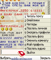 В принципе, для тех, кто хотя бы раз имел дело с чатом на ПК, освоение программы не составит никаких сложностей. Регистрируем собственный логин, вводим пароль, настраиваем опции экрана. Здесь кроется первая не очень приятная особенность программы. Для цветов интерфейса подобраны мягкие пастельные тона, что в конечном итоге ухудшает восприятие текстовой информации. Чат имеет несколько комнат – здесь все как обычно. После названия комнаты указывается количество посетителей в ней. Возможности программыКонтекстное меню вызываются правой софтверной клавишей. Для каждой опции меню предусмотрены горячие цифровые клавиши.