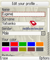 Для собственного профиля указывается имя, фамилия, пол, дата рождения, город. К профилю можно прикрепить фотографию, которую нужно делать непосредственно из программы. Сама по себе работа с фотографиями неплоха, но реализована она очень криво. Во-первых, программа не умеет опрашивать память телефона на предмет наличия хранящегося там материала. Поэтому для прикрепления фотографии к собственному профилю ее приходится делать непосредственно с камеры во время работы чата. То есть ни о каких заранее снятых фото или графических аватарах речь не идет. Это же относится и к опции отправки фото и аудиозаписей собеседнику. Захотели отправить фото или аудиозапись – будьте добры сделать ее прямо в программе. Именно поэтому утилиту вряд ли можно рассматривать в качестве серьезной альтернативы сервису MMS. Надеюсь, что в следующих версиях программы эти недостатки будут устранены.