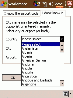 Менеджеры поездок для устройств на основе ОС Windows Mobile.World MateПри планировании поездок, будь то деловых или просто для отдыха, очень часто необходимо заранее узнать погоду, получить текущий курс валюты, узнать расписание рейсов самолетов. Не лишним будет также продумать заранее необходимый багаж. Для подобного планирования существует ряд программ, позволяющих сделать это с наибольшим комфортом. К подобного типа планировщикам относится программа World Mate. World Mate. Разработчик – Mobimate, сайт – www.mobimate.com. Условия распространения – shareware, цена программы – $74.95 Установка.Программа устанавливается стандартным образом при помощи ActiveSync. После установки ее потребуется зарегистрировать. Триальная версия работоспособна в течение 24 часов.
