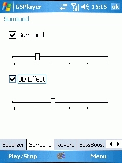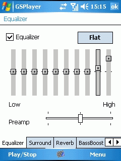 Имеется встроенный 10-полосный эквалайзер с функцией добавления пространственных эффектов и усиления басов. Эквалайзер позволяет изменять окраску звучания в достаточно широких пределах. Настройки эквалайзера можно сохранить в собственный пресет или воспользоваться одним из существующих.