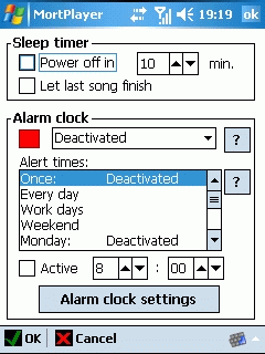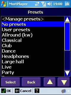 Программа имеет собственный будильник для включения в заданное время, функцию автоотключения экрана и выключения устройства в заданное время – так называемый ночной режим. Имеется привязка аппаратных кнопок к основным функциям, которую можно редактировать. Можно включить плагин для экрана Today и слушать музыку без включения основной программы. В программе есть масса необязательных, но полезных функций. Например, можно отрегулировать сдвиг внутри композиции в секундах, изменить размер кэша при воспроизведении, ввести адрес прокси-сервера, выбрать режим смены композиций и многое другое. ВпечатленияПри воспроизведении композиций понравилась работа эквалайзера. С хорошими наушниками можно достичь вполне приличного звучания. Эргономика управления тоже на высоте. Запоминается воспроизведение текущей позиции при звонке, восстанавливаются настройки при загрузке программы. К недостаткам можно отнести лишь некоторую тяжеловесность – если во время воспроизведения использовать меню программы, то плеер начинает заметно подтормаживать. К условным недостаткам можно отнести достаточно высокую цену на продукт. Во всем остальном претензий к программе нет. Mortplayer