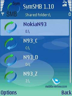 После определения сетевого диска он становится доступен в проводнике в качестве отдельного ярлыка. Таким образом, я одновременно подключал к ПК сразу три смартфона – Nokia N80 IE, N91 и N93. Для чего это нужноСамое первое, для чего можно использовать созданное подключение, – это беспроводной перенос информации с одного устройства на другое. Выгода для пользователя здесь очевидна. Представим себе достаточно простую ситуацию – вам нужно перенести фотографии или записи видео с одного смартфона на другой. Стандартных способов в этой ситуации как минимум два. Первый – при помощи дата-кабеля переносим данные на ПК, затем с него – на второй смартфон. Вариант – перенос при помощи карт-ридера. Недостатки такого способа очевидны – нужно как минимум иметь один (а лучше два) дата-кабеля или карт-ридер. Неудобства, связанные с извлечением карты памяти, помещением ее в карт-ридер, потом заменой ее на другою карту, тоже вполне очевидны. Вариант с двумя дата-кабелями более предпочтителен – данные можно сразу переносить с одного смартфона на другой, но для этого их нужно как минимум иметь в наличии, да и потом возня с проводами в современном мире воспринимается как некий анахронизм. Второй способ – перенос данных при помощи Bluetooth. Тоже имеет свои недостатки. Во-первых, достаточно низкая скорость передачи данных, во-вторых, не всегда удается «спарить» сразу несколько устройств. Так что по параметрам удобства предлагаемый способ является вполне адекватным. Скорость передачи данных между устройствами является достаточно низкой. Фильм размером 98 Мб передавался с ПК на смартфон в течение 46 минут. Передача файла в обратном направлении заняла около 8 минут. При передаче его в режиме обмена данными через кабель скорость была на порядок выше, и передача заняла две с половиной минуты. Подведем промежуточные итогиПоявление подобной программы – это первый шаг в направлении обмена данными между мобильными устройствами с использованием протокола Wi-Fi. Сам по себе подход является достаточно инновационным. Остается только пожалеть об отсутствии в комплекте программного обеспечения для смартфонов файловых браузеров, позволяющих работать с сетевыми папками.
