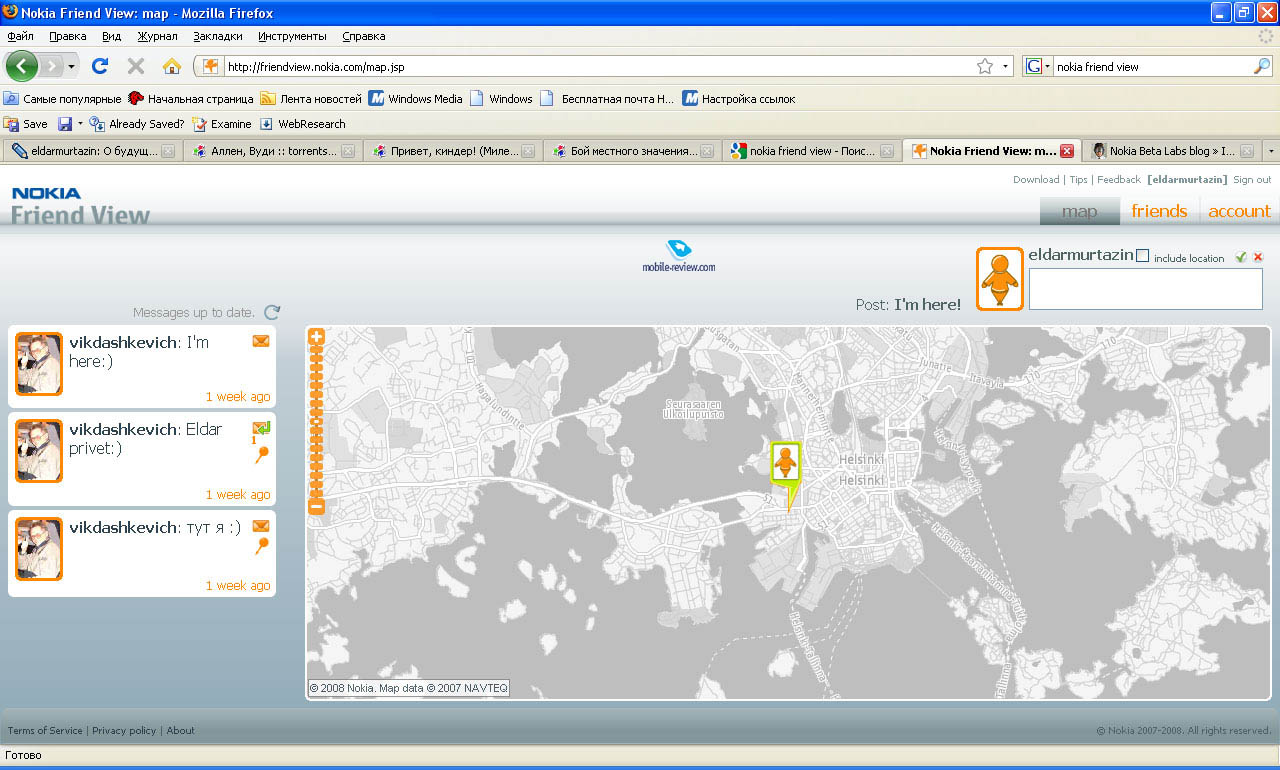 Nokia Friend View – впечатления от сервисаМикроблоги - это отдельная вселенная. Средство для общения, которое начинает работать, если у вас много друзей, тогда заметны разговоры, и они становятся интересными. Писать в стол приятно немногим, особенно, когда это «глубокие» мысли о текущих передвижениях по городу, делах и тому подобной ничего не значащей чепухе. В отличие от сетевых дневников, которые порой приятно перечитать, микроблог - это день сегодняшний и только. Никаких обсуждений, бурных дискуссий, микроблоги фактически не предназначены для этого. Ярким примером такого сервиса является Twitter. Вам интересен человек, вы добавляете его и читаете небольшие предложения о его жизни. Ничего особенного, маленькие заметки, комментарии и тому подобные штуки. Это либо привлекает, либо нет. Вряд ли микроблоги станут широко востребованными, простота по сравнению с обычными сетевыми дневниками - обратная сторона этих сервисов. Однотипная информация, которая становится неинтересной уже через пару месяцев. Мое знакомство с микроблогами началось с сервиса Jaiku, который активно продвигала компания Nokia в 2006 году. Складывалось ощущение, что его в итоге купят и интегрируют в свой набор услуг. Но этот микроблог отошел к Google, а в Nokia создали свой, иной вариант микроблога, Nokia Friend View. Позиционирование услуги банально, она предназначена для социальной сети, вашей сети. То есть вы выбираете своих друзей, коллег, родных, тех, кого вы хотите видеть и о ком вы хотите знать. Отличие этого микроблога в том, что он показывает не только ваши записи, но и место, где они сделаны, а также ваше местоположение. Принципиально иная функциональность и реальность, которую трудно понять, пока не попробуешь самостоятельно. Оговорюсь, что этот сервис находится в стадии беты, то есть не является коммерческим и, возможно, даже не появится как отдельная услуга, а будет интегрирован в другие сервисы от Nokia. Он напрашивается как составная часть навигационного пакета Maps, возможно, в виде отдельного модуля, в чем-то дублирует Nokia Chats. В то же время функциональность уже такова, что с программой можно работать. Сайт сервиса располагается по адресу friendview.nokia.com Программу можно установить на смартфоны S60 третьего издания, пока не поддерживаются сенсорные модели пятого издания, например, Nokia 5800. Работа с микроблогом проста до безобразия. Вы один раз заносите свои учетные данные, и затем телефон определяет ваше местоположение. Это может быть аппаратный GPS либо определение местоположения по сотам сети. Выбирать можно как первый, так и второй способ. Думаю, и примерное местоположение вполне хорошо для этого сервиса, точность особая тут не нужна. Радиус в 100 метров вполне допустим. В конце концов, мы не используем этот сервис для наведения ракет на цель. ![]() ![]() ![]() В основном окне программы вы видите карту, на которой показывается значок с вашей аватаркой, а также карту места, где вы находитесь. Карты подгружаются по сети, вы можете их масштабировать. При начале работы на несколько секунд сервис помещает вас либо под Хельсинки, либо в Таллин. С чем связано такое предпочтение этих городов - неясно, но затем ваши координаты показываются правильно. Подгрузка карт и отсутствие кэша как такового - это минус программы. Она очень прожорлива в отношении трафика, по возможности следует использовать WiFi-соединение. 