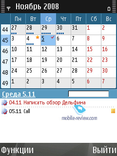 Еще одной новой фишкой стало изменение масштаба просмотра. Двигая ползунок вправо или влево, мы изменяем размер шрифта, соответственно изменяется количество строк, доступных для просмотра без вертикального скроллинга. В программе имеется пять типов просмотра. К четырем стандартным – месяц, неделя, день, расписание - добавлен вывод на экран задач. В этом варианте в просмотр задач добавлен фильтр, который позволяет сортировать задачи по общему списку, активным, сегодняшним, задачам на следующие семь дней. Кроме того, присутствует опция просмотра просроченных и недатированных задач. В задачи можно добавлять аналогичное текстовое примечание, по которому прямо из календаря можно звонить, отправлять SMS и электронные письма.