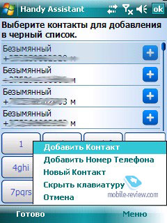 Следующий пункт – черный список, в который можно добавить контакт из телефонной книги или номер телефона. Здесь все обычно – звонки отклоняются, абонент услышит сигнал «Занято».