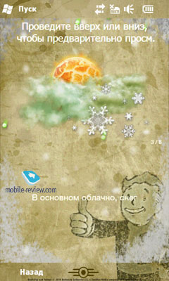 Вуаля. Если все сделано верно, и вам везет, внешний вид оболочки HTC Sense должен измениться до неузнаваемости. По экрану теперь проплывают кислотного цвета облака и падают капли дождя, все меню и элементы - со следами потертостей, ну и, конечно же, почти на каждой вкладке вы можете видеть знакомого и любимого всеми фанатами вселенной Fallout паренька, талисман всех игр серии – Vault Boy.