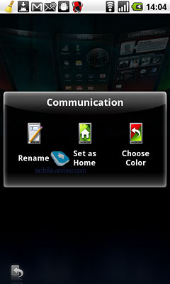 Количество виртуальных экранов ограничено числом в 16 штук. Точнее, слово «ограничено» здесь едва ли будет верным, просто больше шестнадцати экранов создать нельзя. Но едва ли кому-то понадобится столько виртуальных столов. ![]() Полоска с количеством виртуальных столов находится между рабочей площадью экрана и клавишами в нижней его части. На текущем экране жирная точка, остальные отмечены простыми точками. Домашний экран выделен, он обозначается не точкой, а иконкой домика и открывается при нажатии клавиши «Домик» (той, которая стандартная для всех «роботов»). При блокировке экрана (отключении) и повторном включении вы попадаете на тот экран, на котором и были, а не на домашний. Домашним экраном можно сделать любой, это выбирается в настройках. ![]() Поговорим еще о настройках экранов или панелей, как они называются в SPB Shell 3D. Для каждой панели можно выбрать название и цвет. Панели можно менять местами, например, если мне не нравится, что панель с погодой находится в левой части ползунка с панельками, я могу перетащить ее в самую правую часть. Если вы убираете панель из списка видимых, она не удаляется, а остается храниться, просто не отображается среди пролистываемых. На мой взгляд, это полезная возможность. Иногда бывает так, что какая-то панель на время не нужна, но уже настроена, на ней упорядочены какие-то иконки, виджеты. В этом случае вы просто снимаете ее из списка видимых, но потом можете в любое время восстановить. ![]() Расположение элементовЗдесь есть свои тонкости. Дело в том, что на любой панели SPB Shell 3D все элементы липнут друг к другу. Допустим, вы вытаскиваете на рабочий стол виджет часов площадью около 10 % от экрана, а затем добавляете значки программ, например 5 значков. При этом около половины площади экрана остается свободной, а все вынесенные вами на рабочий стол элементы собираются вокруг виджета. Вы можете поменять местами расположение иконок, но не можете отделить их от виджета и друг от друга. То есть, нельзя поместить часы вверх, а иконки собрать внизу экрана. На мой взгляд, это не всегда удобно, хотя в SPB называют эту особенность просто одной из «фишек» оболочки.