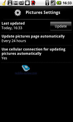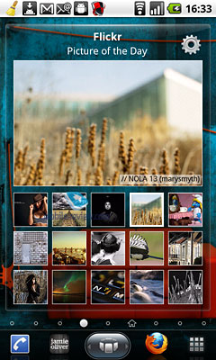 Виджет с картинками позволяет просматривать изображения с помощью трехмерной карусельной галереи. Пользователи аппаратов HTC сразу вспомнят стандартную галерею оболочек HTC Sense и TouchFLO 3D.